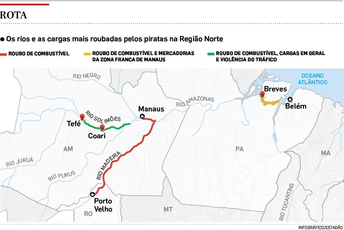 Os rios da Amazônia têm sido alvo crescente de ataques de piratas. O número de assaltos nos trechos Manaus-Belém e Manaus-Porto Velho quadruplicou de 50 em 2015 para mais de 200 em 2016, segundo o Sindicato dos Trabalhadores em Transportes Aquaviários do Amazonas (Sintraqua). Os ataques são feitos quase sempre à noite. Durante o dia, as ações ocorrem com as embarcações em movimento, para chamar menos a atenção.