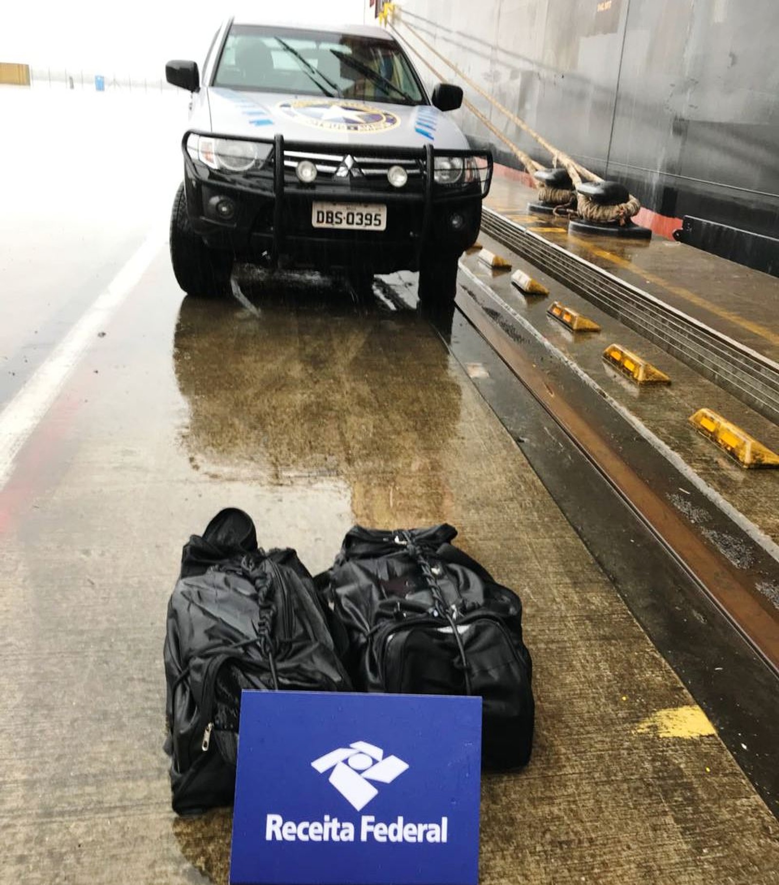 Ao longo dia, uma busca foi realizada a bordo e duas malas pretas foram encontradas por equipes da Receita Federal, armazenadas irregularmente em um contêiner. Dentro delas, estavam mais 57 kg de cocaína, que foram prontamente apreendidos pelos agentes da Polícia Federal que deram continuidade à ação.